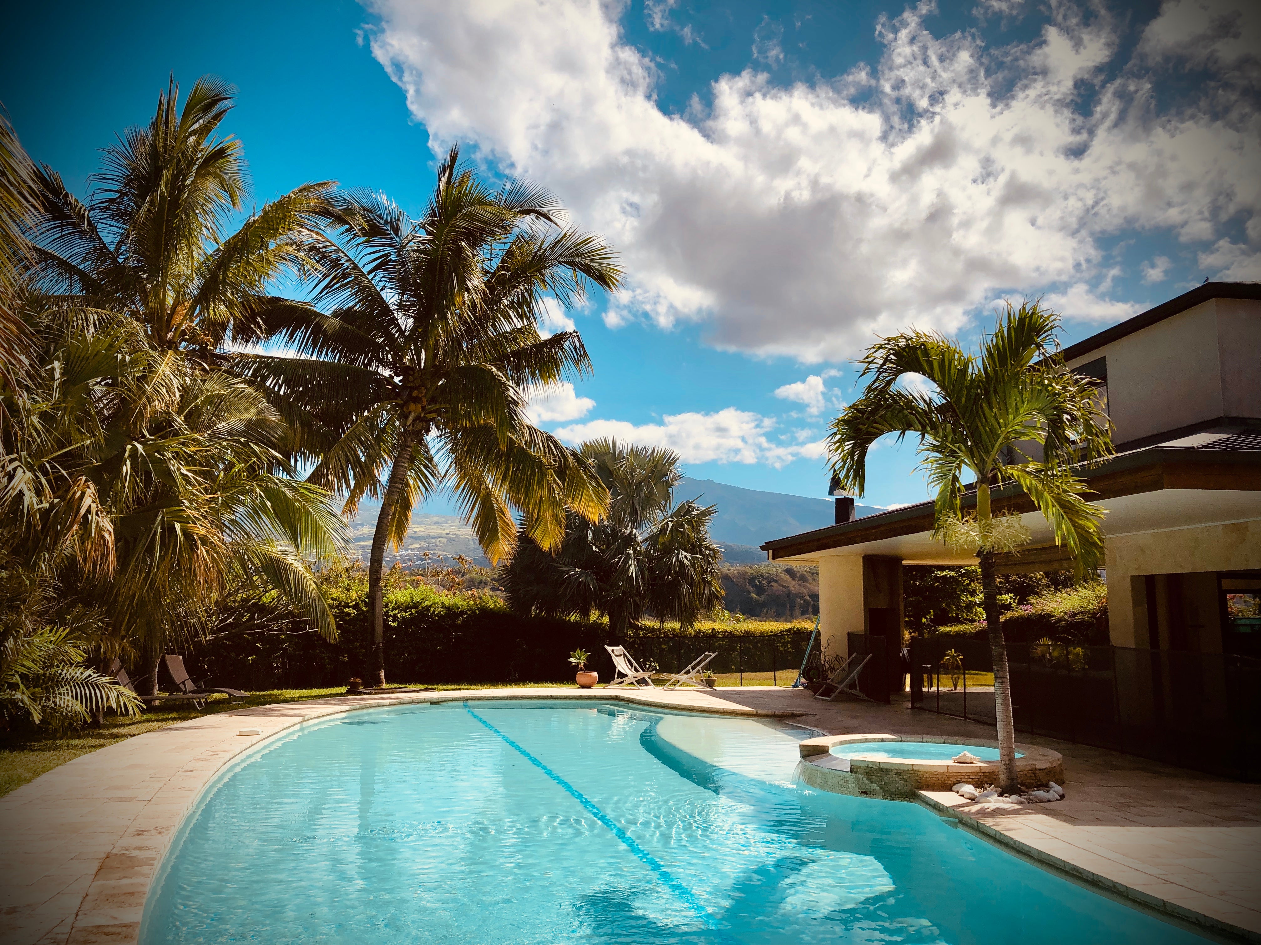 Calme, sérénité et confort dans une des plus belles demeures de l’Ile de la Réunion, la Villa Sud Sauvage spacieuse de 490 m2 sur un terrain arboré de 2500 m2 offre une vue splendide sur le Piton des Neiges. Elle dispose d'une piscine de 22 m2, un bain à remous, un billard, une table de ping pong, un fauteuil massant. 8 chambres avec chacune sa salle de bains et ses toilettes.